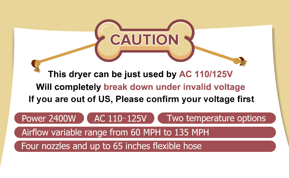 - Airflow variable: 65MPH-135MPH, Fits from tiny dogs to large breeds